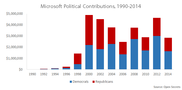 It opened up lobbying offices in Washington, DC, and began pumping in increasingly large amounts of money (at least $133 million since 1996) to curry favor in low places It started a program of large-scale political contributions. It ended its practice of permissionless innovation and started playing the game.